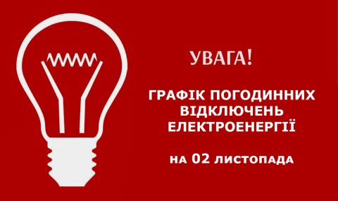 Графік погодинних відключень на 2 листопада відповідно до команди НЕК «Укренерго» в Золотоніській громаді.