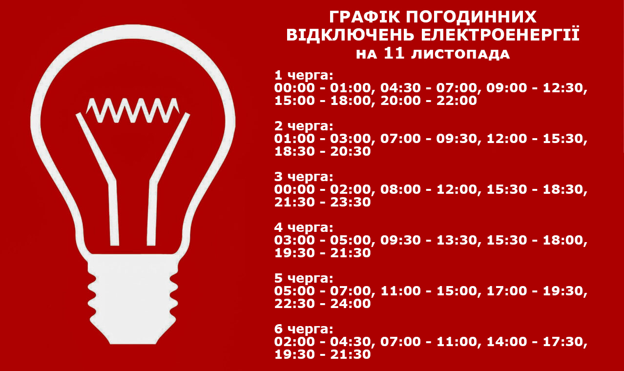 Графік погодинних відключень електроенергії на 11 листопада