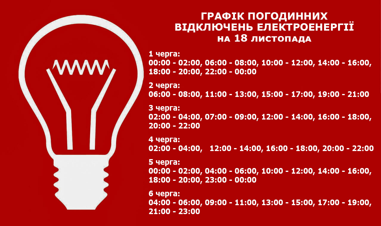 Відповідно до команди НЕК «Укренерго» 18 листопада з 00:00 до 24:00 в Золотоніській громаді будуть застосовані графіки погодинних вимкнень (ГПВ).